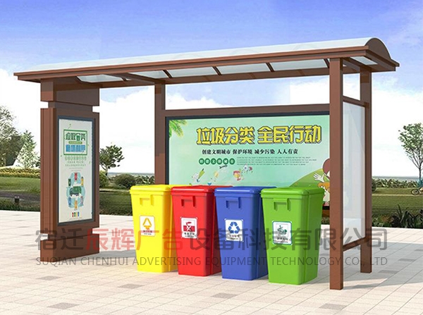 垃圾分類亭一般放在小區或者公共的地方集合垃圾之用。同樣的材料也可制成配電房、報亭、崗亭、景區休息室等。宿遷辰輝廣告設備科技有限公司,我們的產品豐富多元化,應用場景廣泛,也可以根據客戶的需要來圖定做。
